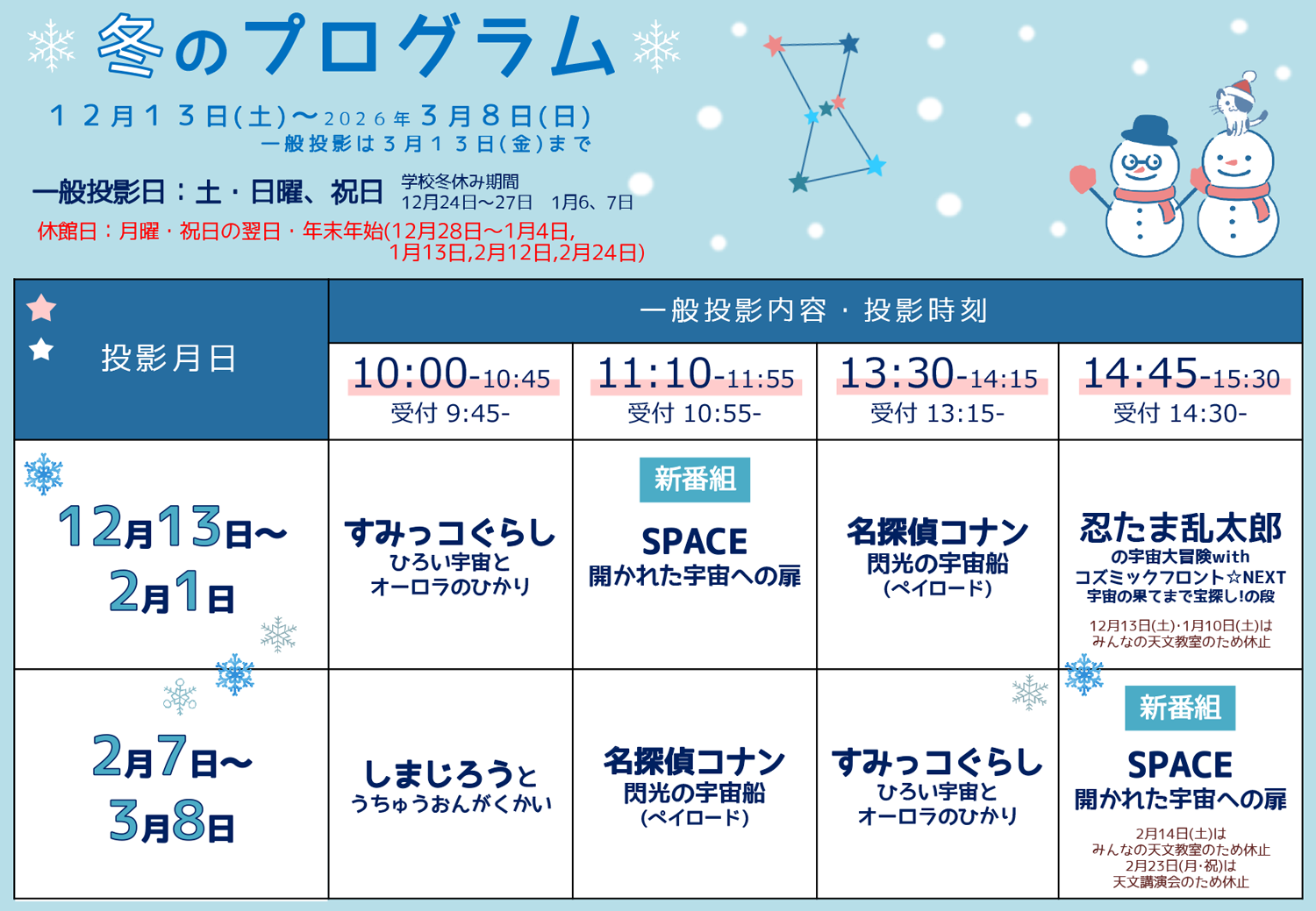 プラネタリウム一般投影 冬プログラムが12月13日から始まります!